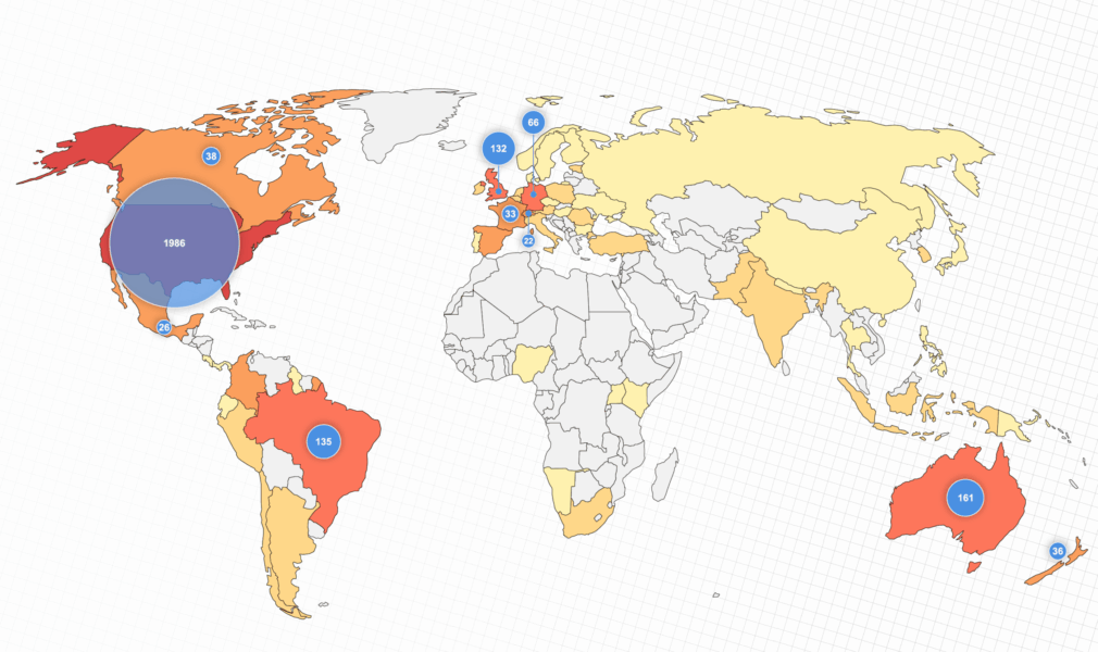 Le volume cumulé des plaintes a été multiplié par 3,5 depuis 2017 : 3 099 cas recensés fin juin 2025 par le Sabin Center for climate change (Université Columbia) dans presque 60 pays, contre 884 huit ans plus tôt (leur base de données se trouve ici). Si les États-Unis concentrent la majorité des affaires (1 986, soit les deux tiers du total), loin devant l’Australie (161) et le Brésil (135), le phénomène se développe sur tous les continents. En Europe, le Royaume-Uni est le pays qui en compte le plus (au 4e rang mondial avec 132 litiges), devant l’Allemagne (5e avec 66 cas) et la France (8e avec 33 cas). Quant aux pays du Sud, ils regroupent désormais 10 % des affaires.